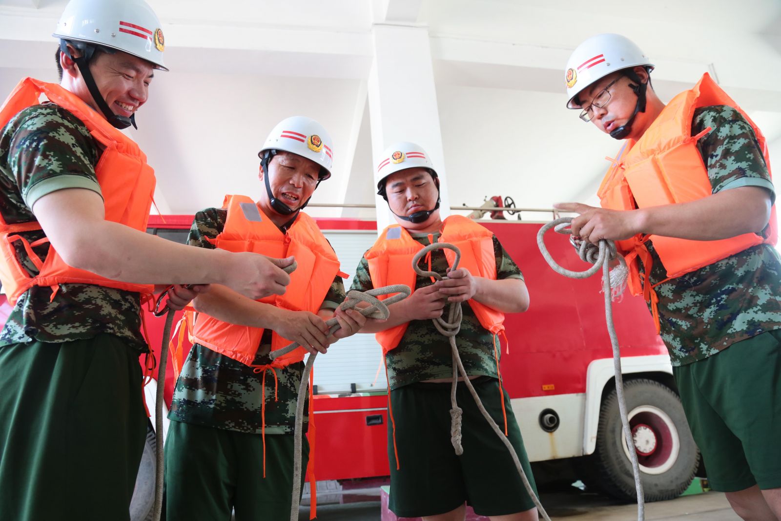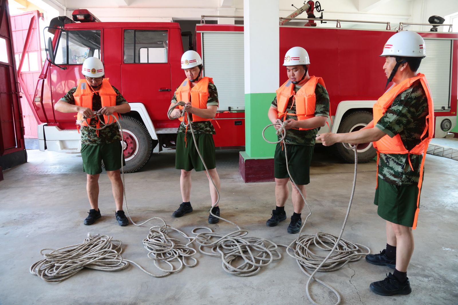 6月11日,公司消防隊組織隊員對“步步緊”繩扣、自救結繩法進行崗位練兵訓練,確保救援中“拉得出、上得去、打得響”,關鍵時候發揮出效用。