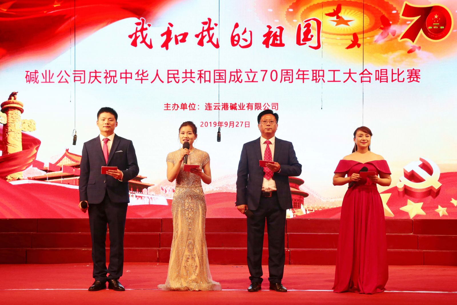 佚年七十飛鵬展,白發三千伏櫪耕。喜看國昌民意順,神州遍布歡歌聲。為隆重慶祝新中國成立70周年,深入開展“不忘初心,牢記使命”主題教育,全面展示連堿人熱愛祖國、激情昂揚的精神風貌,9月27日,公司在生活區俱樂部成功舉辦“我和我的祖國”慶祝中華人民共和國成立70周年職工大合唱比賽。來自全公司的18支隊伍,900余名干部職工和離退休人員參加了比賽。