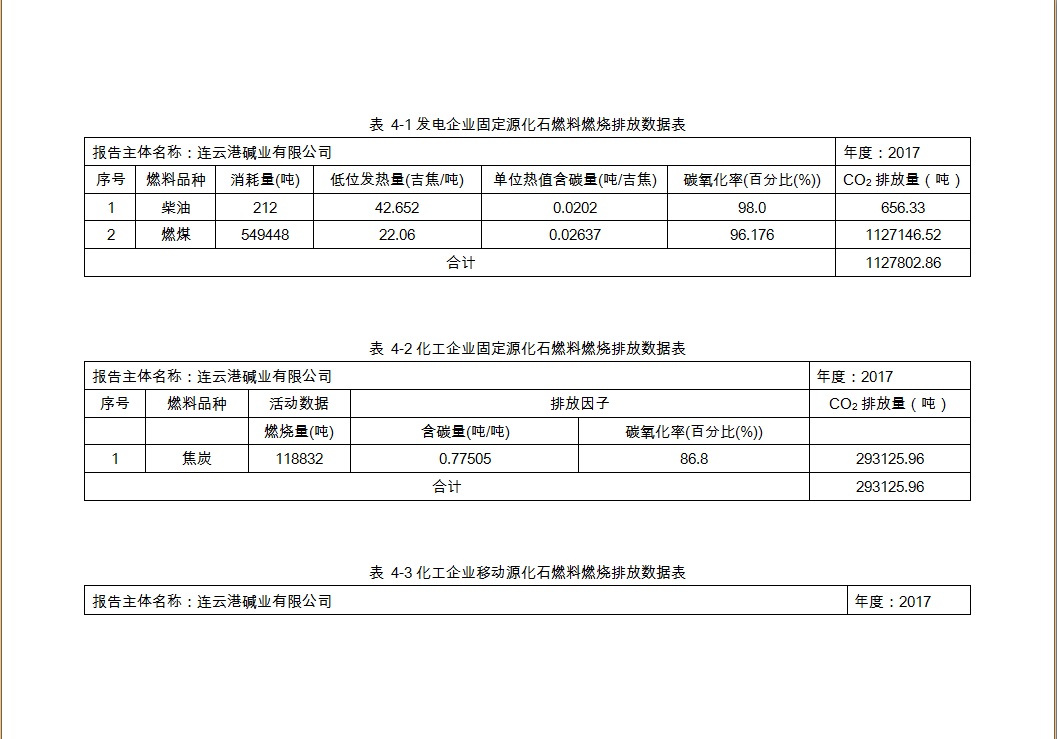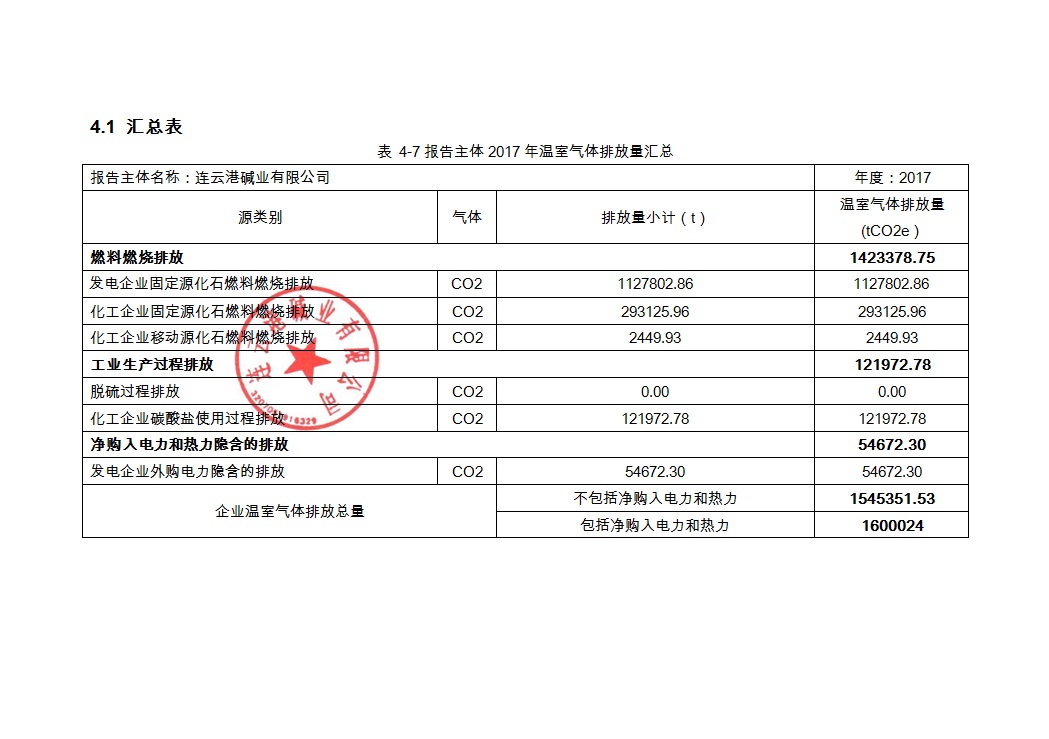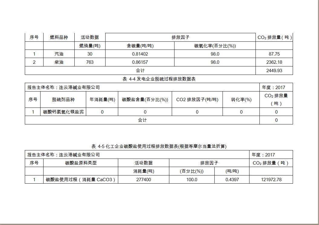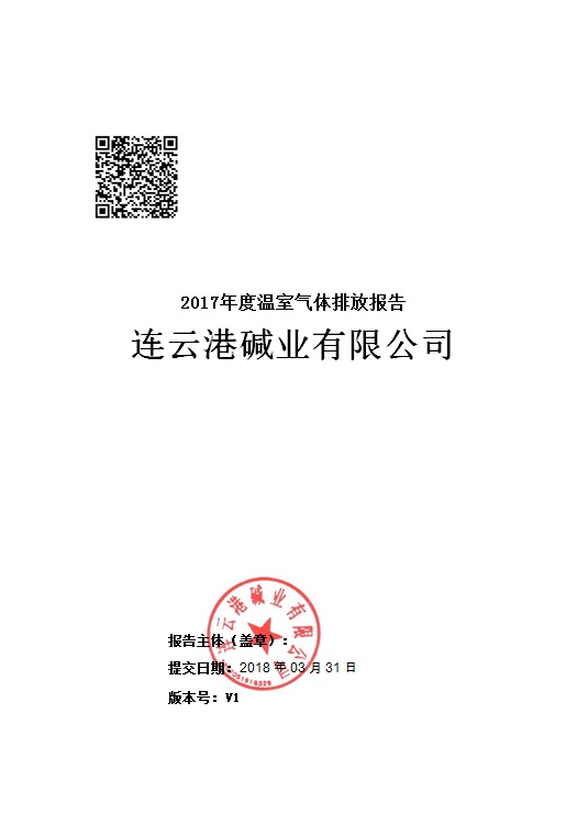 連云港堿業有限公司2017年度溫室氣體排放報告